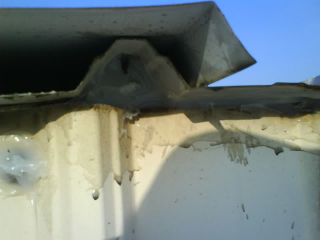 高雄抓漏-鐵皮屋漏水修繕 因凸出的部位擋住泄水溝,造成一下雨就會積水無法流出,時間久了導(dǎo)致鐵皮屋銹蝕,而造成漏水.原因?yàn)?鐵工施工不慎.首先應(yīng)觀察別處是否還有漏水的可能性,將漏水施工處做全面性處理,以防止水的無孔不入的特性