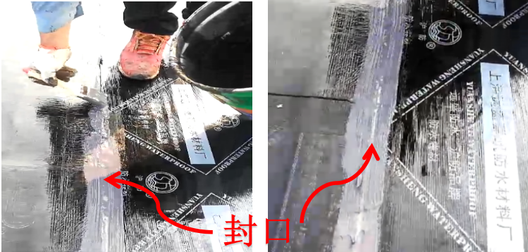 卷材鋪貼后,堅持當(dāng)天鋪貼的卷材必須當(dāng)天把所鋪卷材長邊和短邊的外露邊口處進行密封,采用卷材邊口專用密封膠對卷材的外露邊口縫及端頭處進行涂刷密封密實,不漏刷即可。